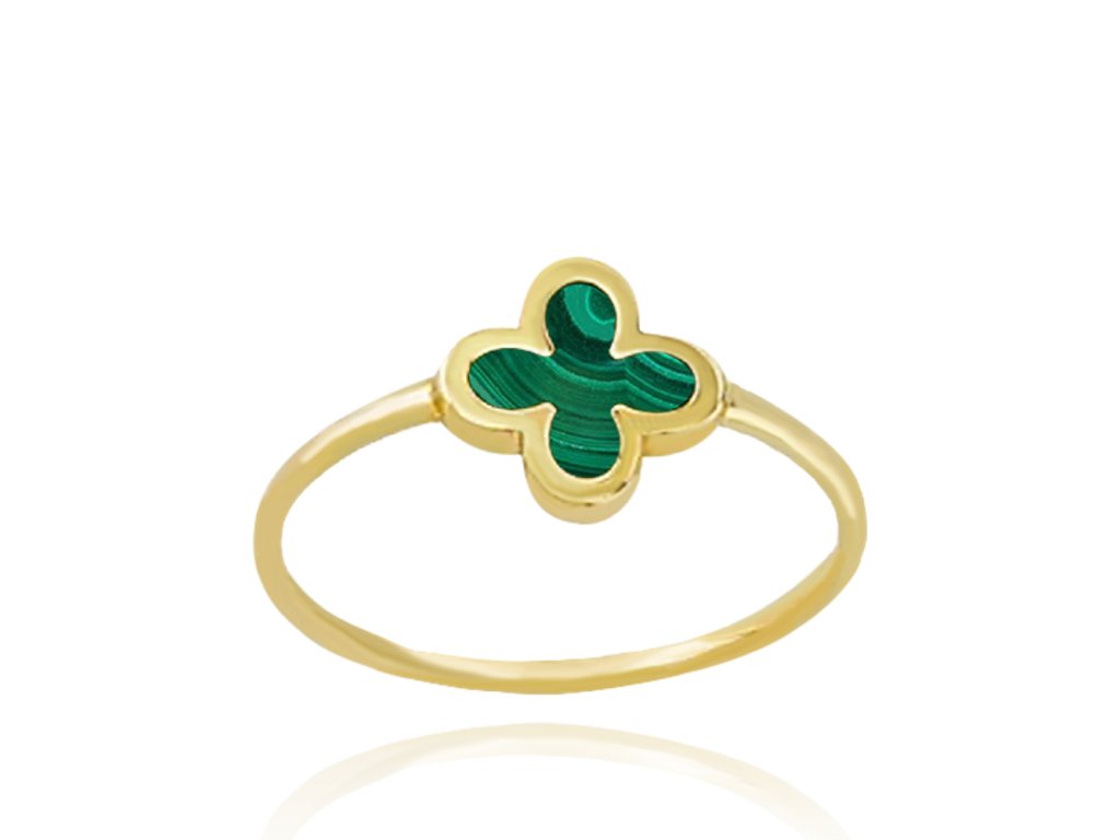 MINET Zlatý prsten čtyřlístek se zeleným malachitem Au 585/1000 vel. 62 - 1,20g