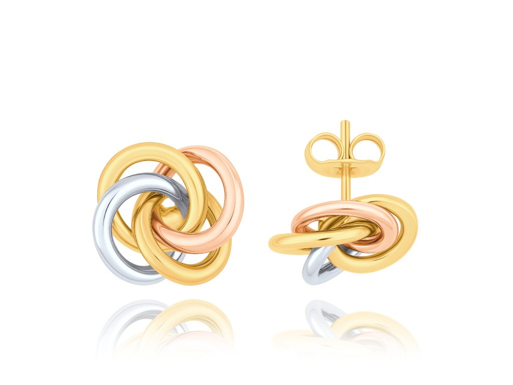 MINET Zlaté trojbarevné náušnice uzlíky Au 585/1000 2,15g